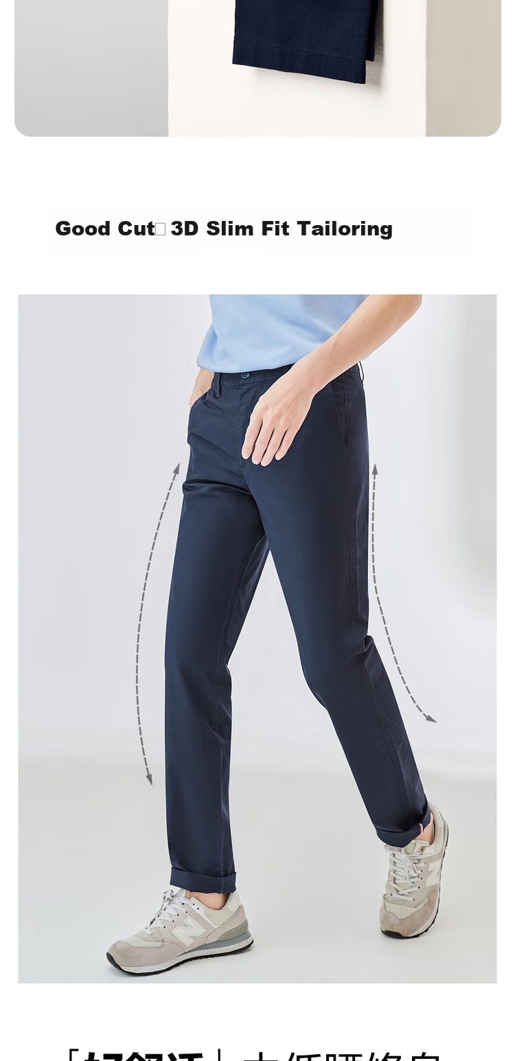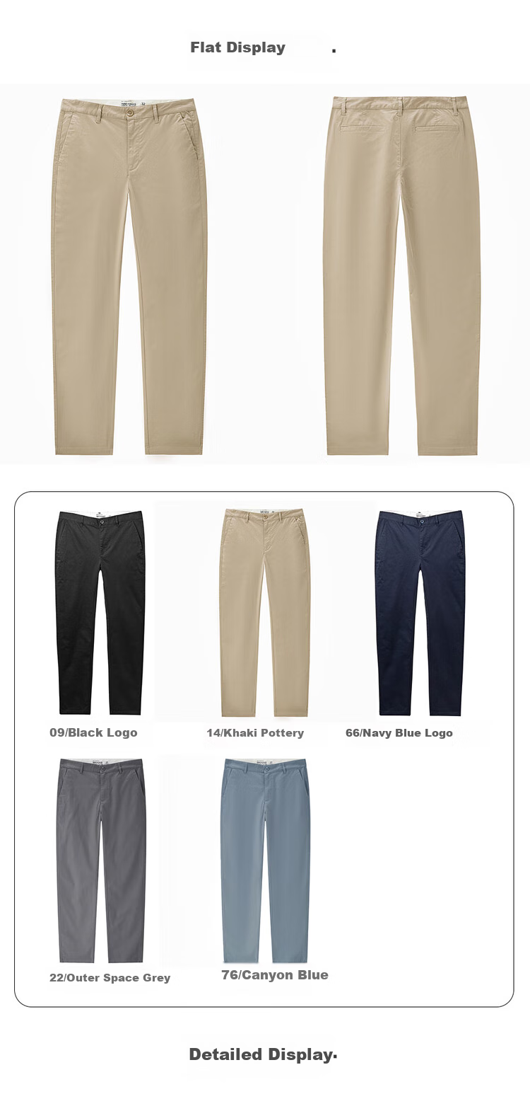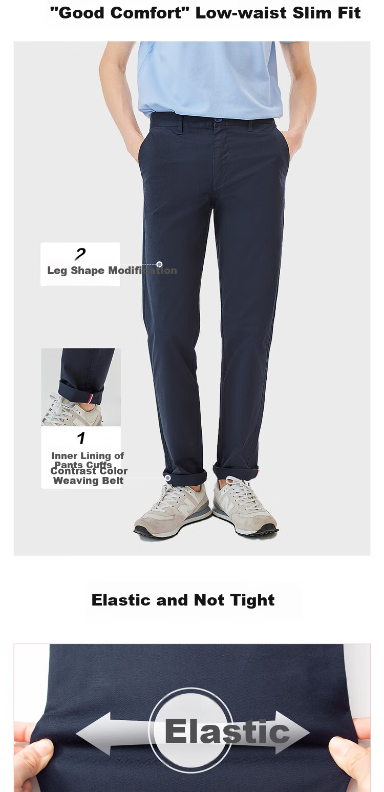 Description: Elastic slim fit casual pants, thin and classic design, ideal for gentlemen. Features ES (Easy Stretch) technology for a comfortable fit.