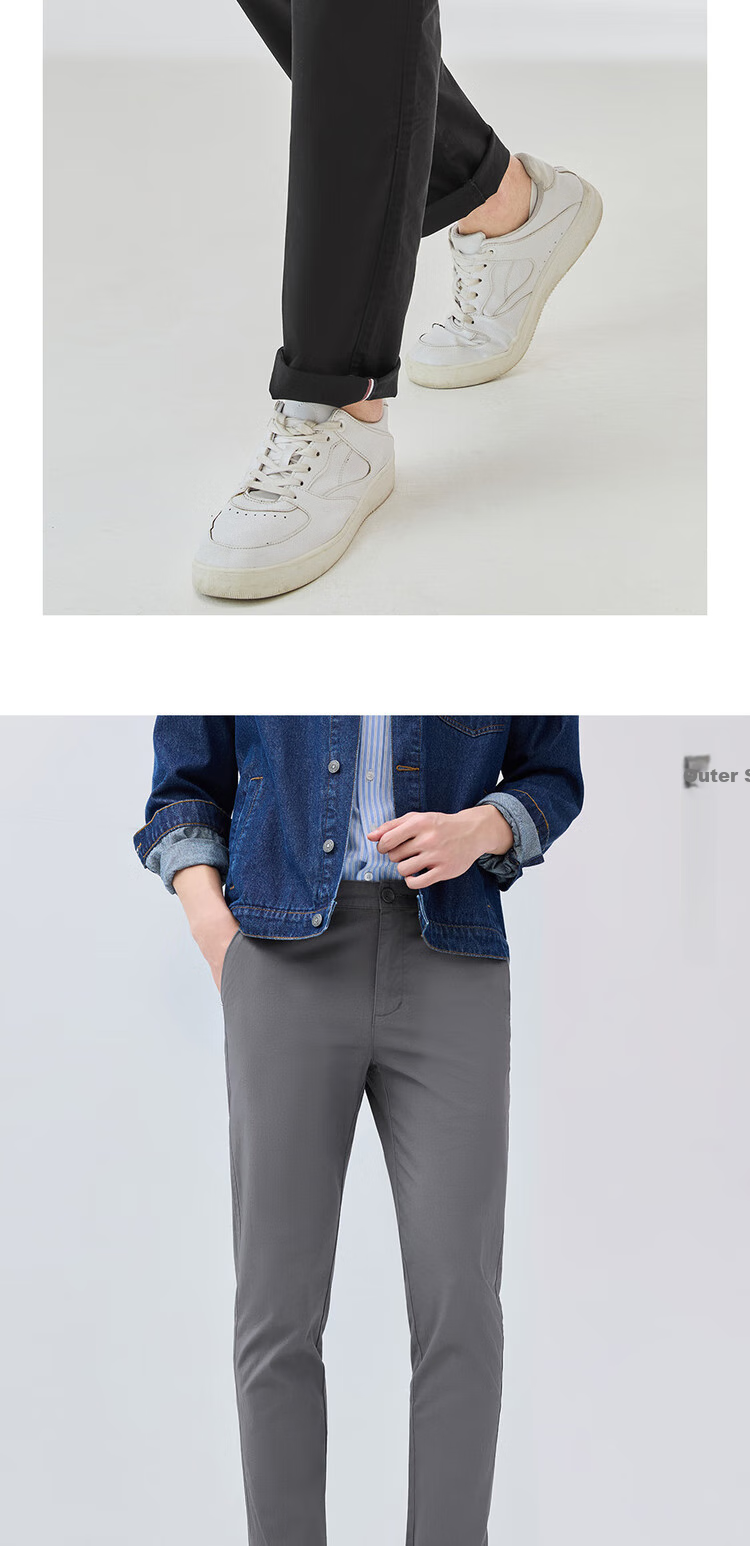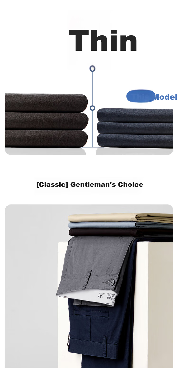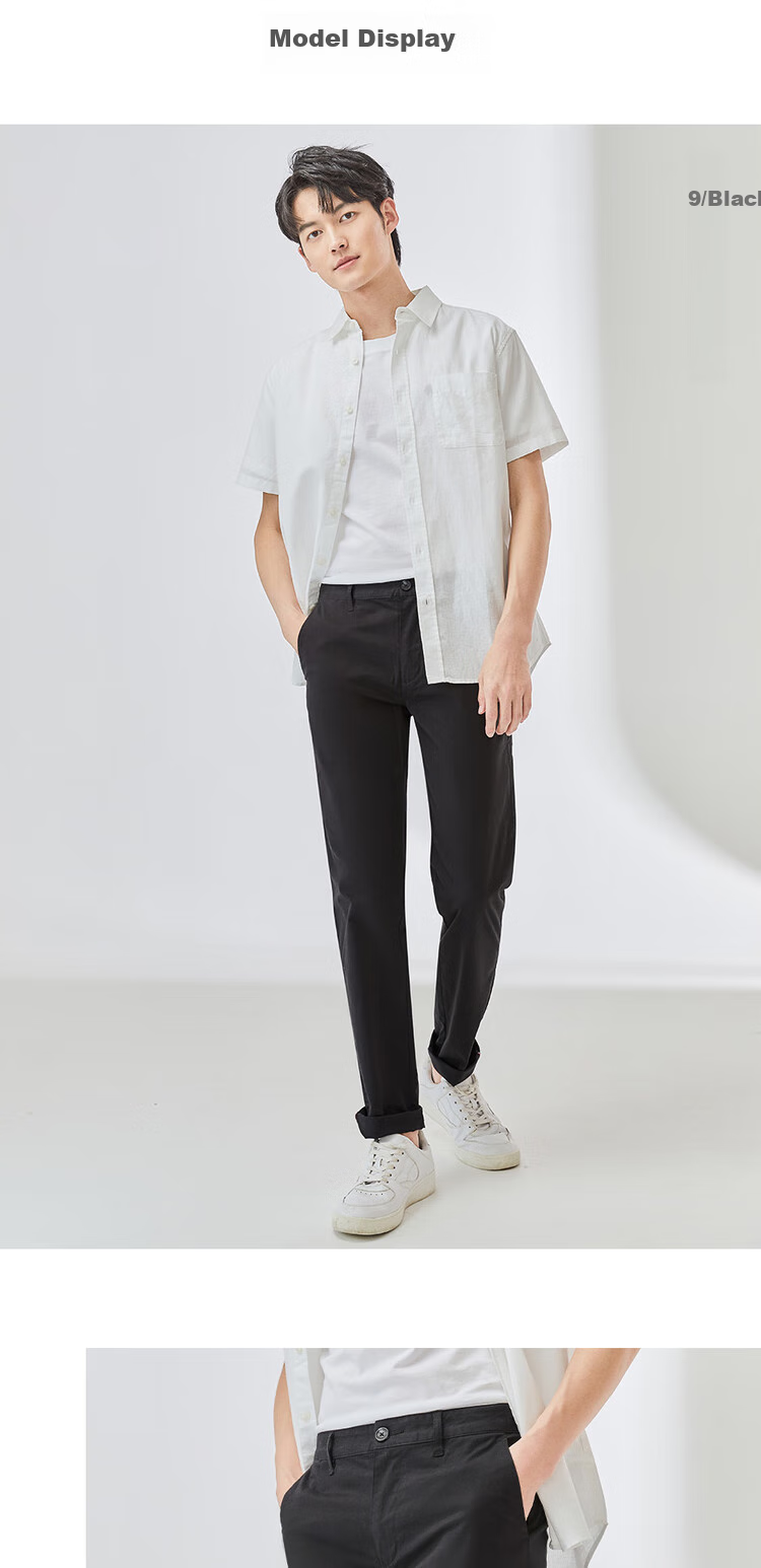 Description: Elastic slim fit casual pants, thin and classic design, ideal for gentlemen. Features ES (Easy Stretch) technology for a comfortable fit.