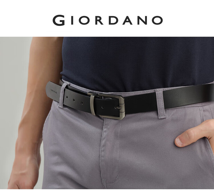 Details: Brushed steel buckle, durable and versatile for reversible dual-color dual-sided wear, convenient for daily styling. Long-lasting and can be worn in dual-color dual-sided style. Giordano branding on the tail with the logo, showcasing quality.