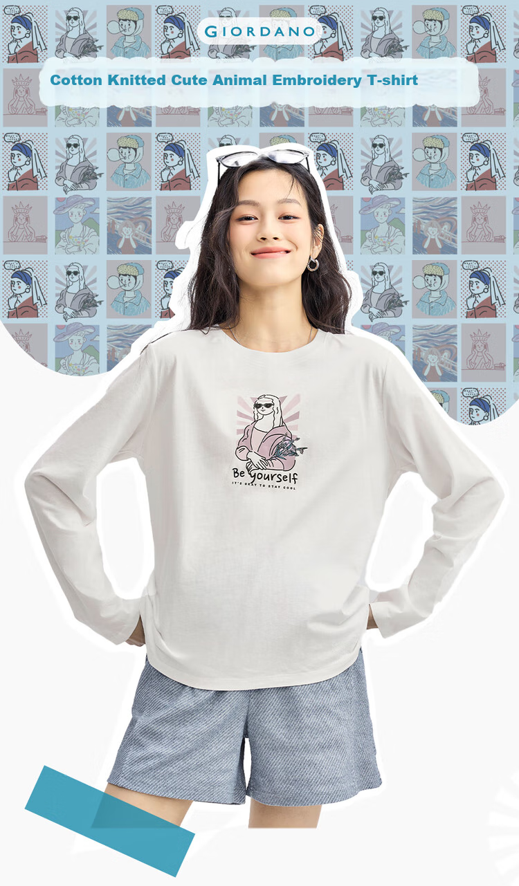 **Product Name:** Pure Cotton Knitted T-shirt with Cute Animal Embroidery