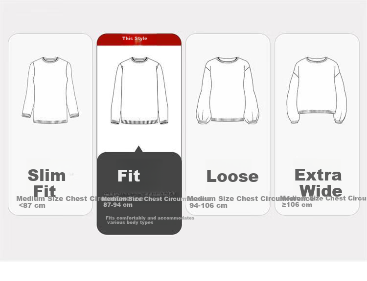 **Fit:** Slim fit, regular fit, loose fit, oversized fit