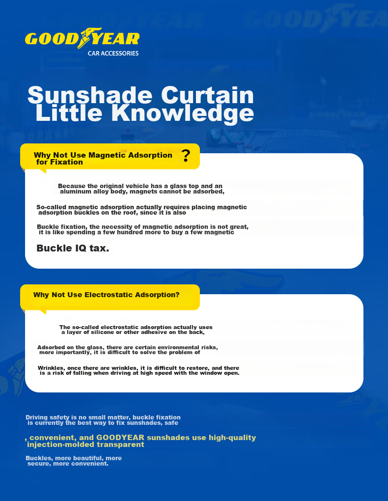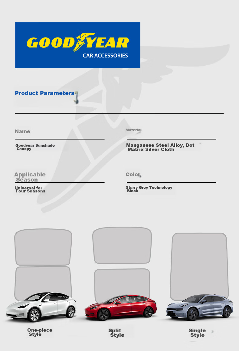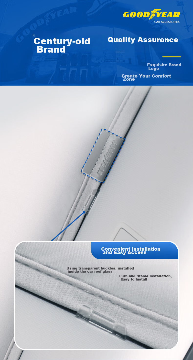 Goodyear, a brand with a legacy since 1898, offers high-quality car accessories designed for comfort, safety, and durability. With a focus on innovation and technology, Goodyear's sunshades are tailored to provide a seamless fit and reliable protection for your vehicle.