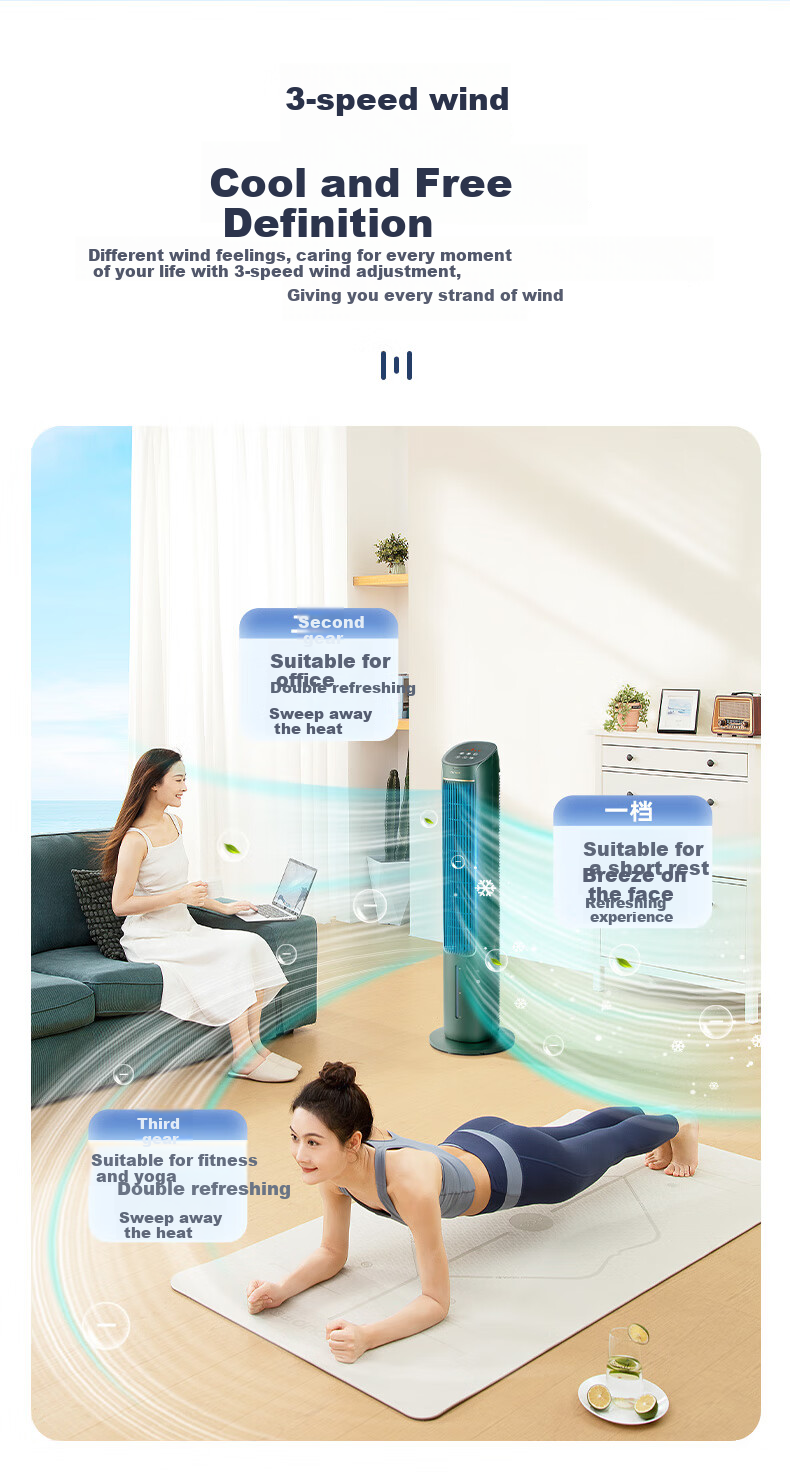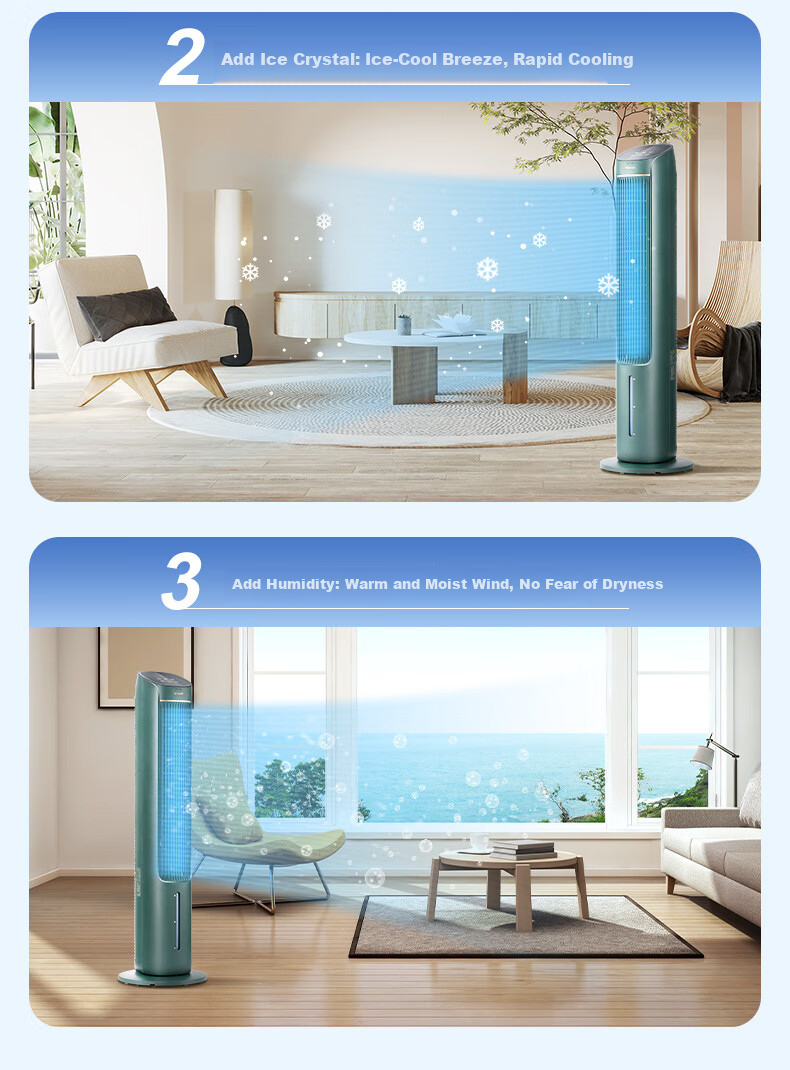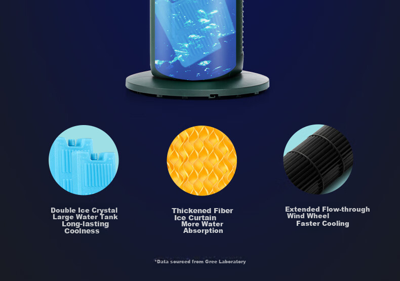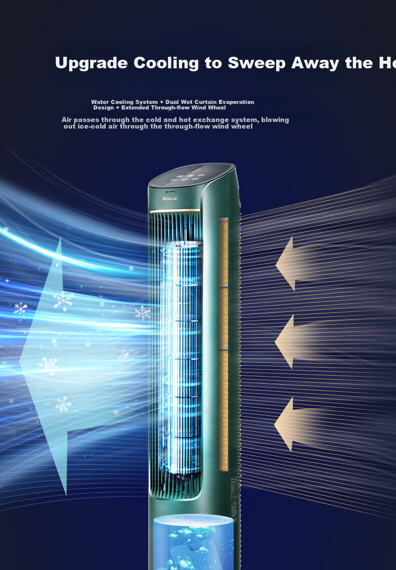 2. Upgraded cooling system with water cooling, dual wet curtain evaporative design, and extended crossflow fan for quick cooling