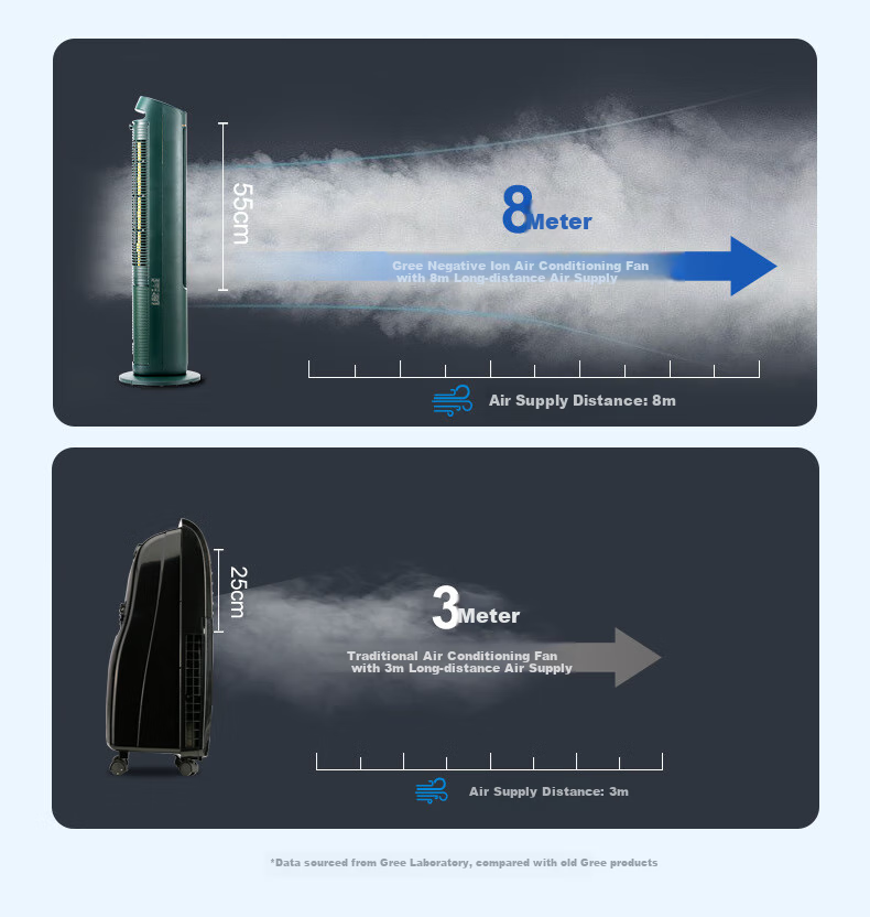 1. 8 unique functions including LED display, negative ion function, two wind modes, aroma function, air supply mode, crossflow duct, wide-angle oscillation, and aesthetic design