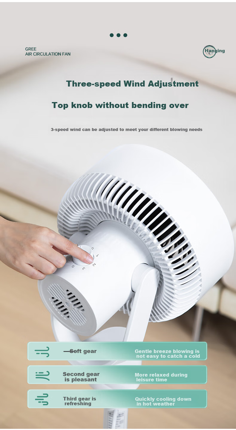 Enjoy a comfortable and refreshing airflow with GREE AIR CIRCULATION FAN, your reliable air companion for all seasons.