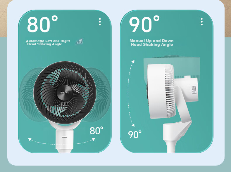 - 80°, 90° automatic oscillation angle, manual vertical oscillation angle