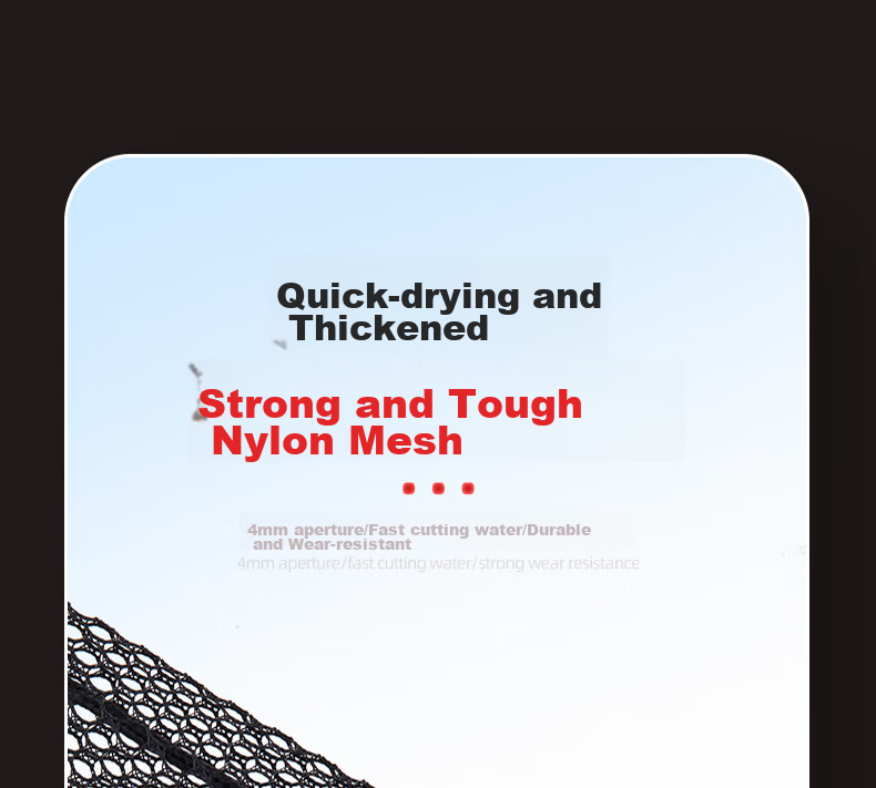 Quick-drying and thick, strong nylon mesh fabric, 4mm aperture for fast water cutting, strong wear resistance.