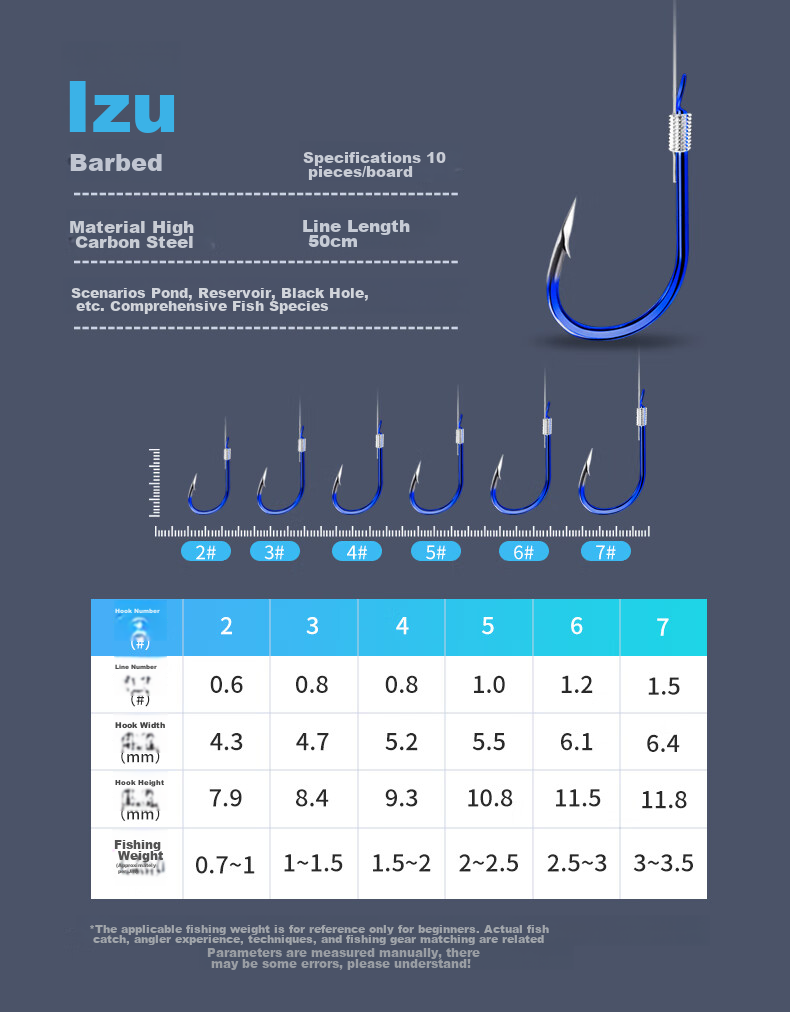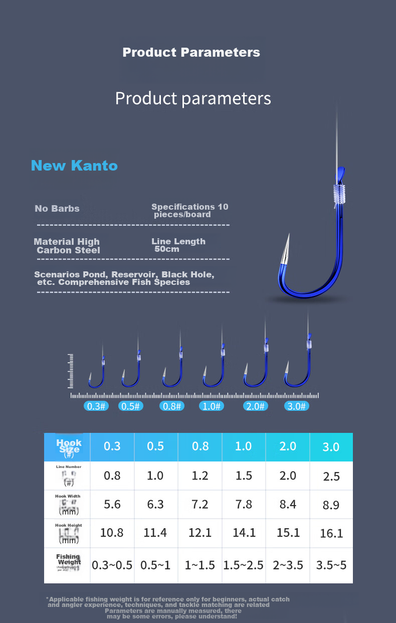 - Line weights: 0.3~0.5 to 3.5~5 (#/jin)