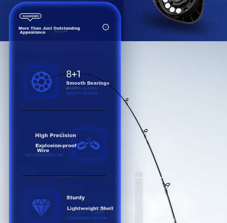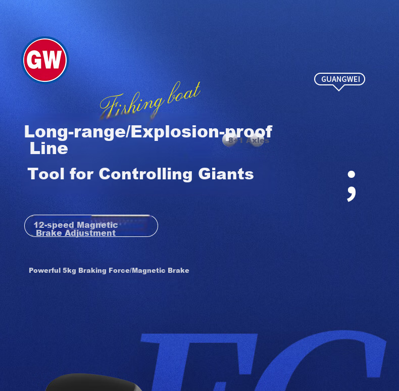 **Features:** Long-distance casting, anti-explosion line, 8+1 bearings, 12-gear magnetic brake adjustment