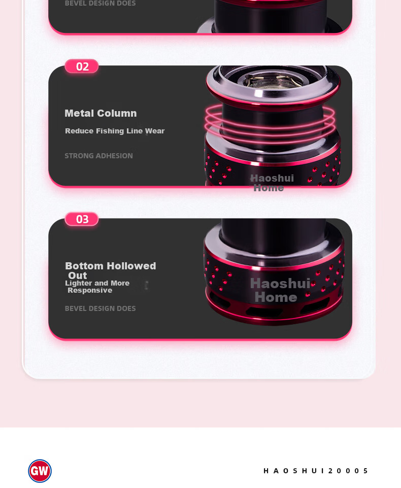 **Design:** Bevel design for smooth line release, metal spindle for durability
