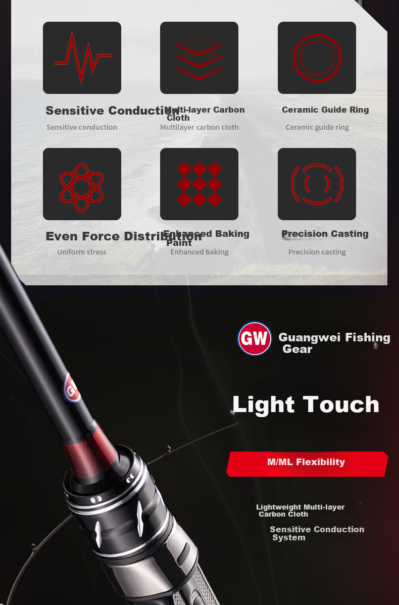 **Features:** High strength, suitable for lure fishing, smooth curve, comfortable grip