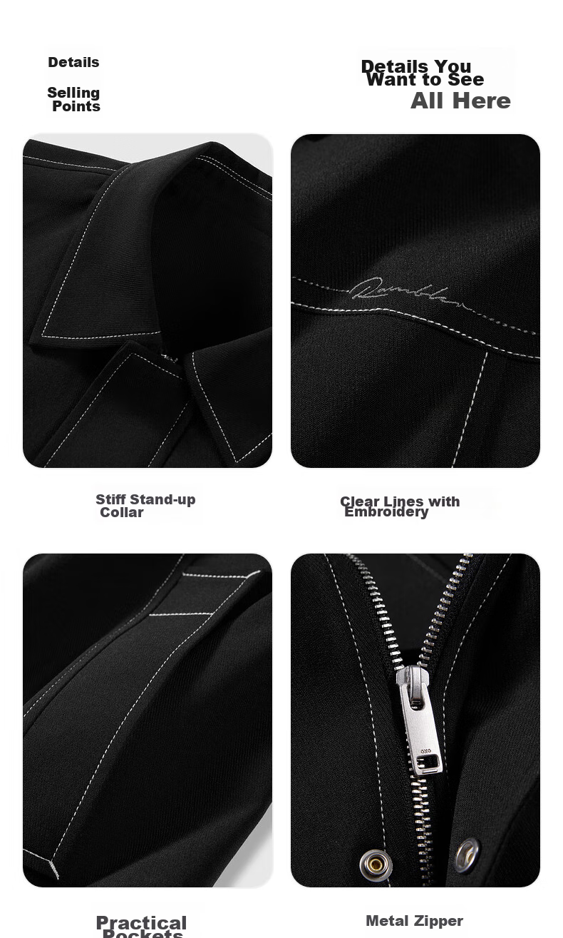 **Details:** Sturdy collar, embroidered details, practical pockets, metal zipper