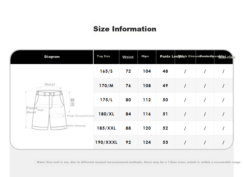 Note: Measurements are in centimeters, there may be a 1-2cm difference due to manual measurement, which is within a reasonable range.