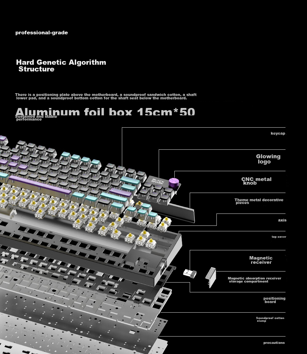 **Construction:** HiFi typing sound with 5-layer noise reduction design, CNC metal knob, magnetic receiver storage compartment