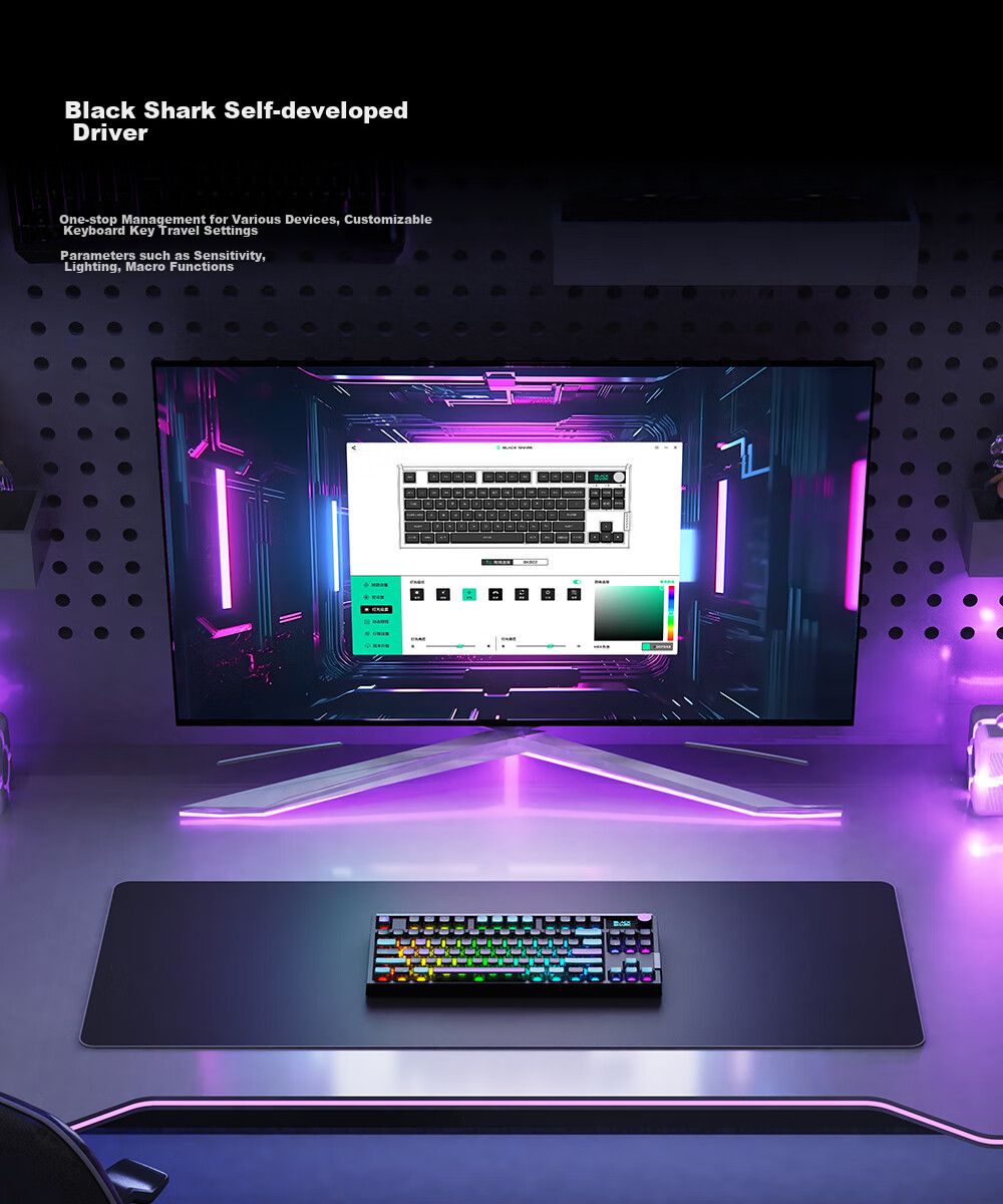**Customization:** Exclusive driver for effective shock absorption, customizable parameters for key travel, sensitivity, lighting, and macro functions