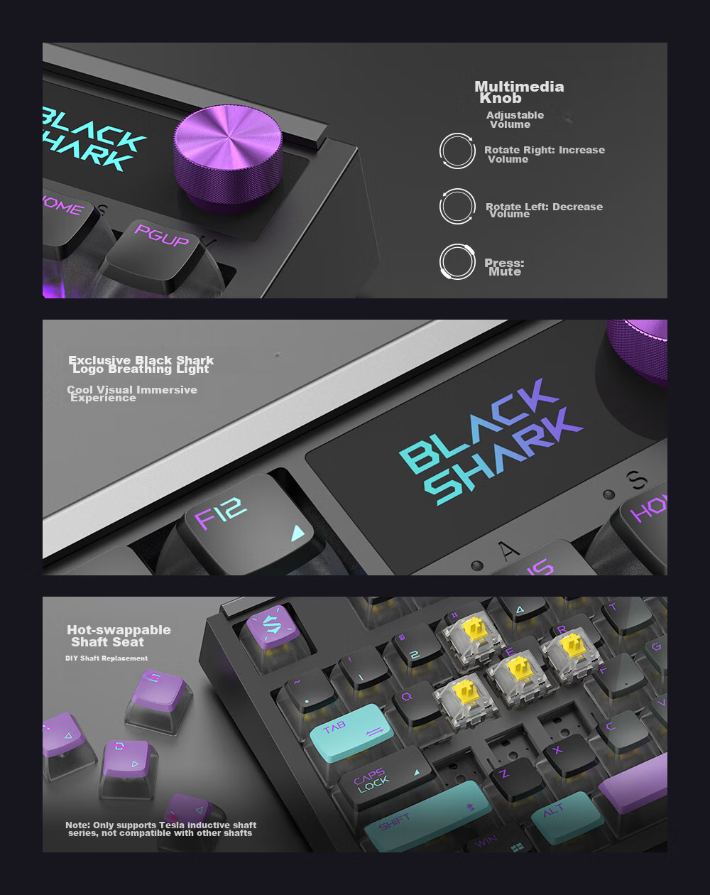 **Additional Features:** Hot-swappable switch socket for DIY customization, exclusive support for "Tesla" inductive switch series