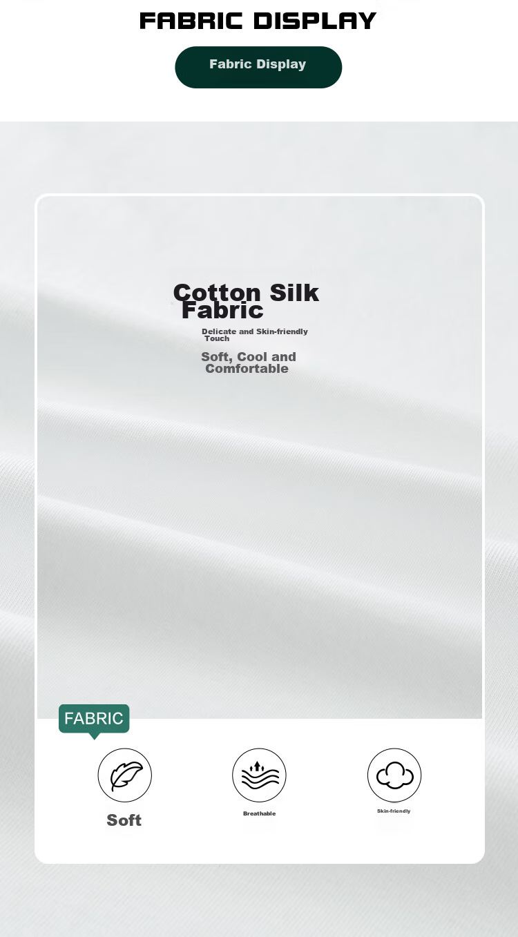 **Fabric:** Cotton blended silk fabric, delicate and skin-friendly touch, soft and cool comfort.