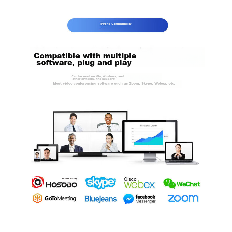 **Compatibility:** Compatible with various software, suitable for iOS, Windows, and supports most video conferencing software such as Zoom, Skype, Webex, etc.