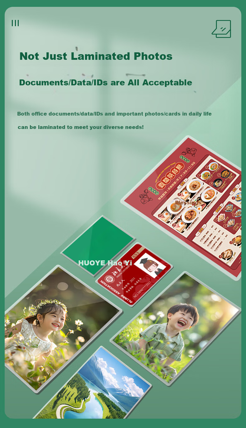 Application: Suitable for laminating photos, documents, certificates, cards, etc.