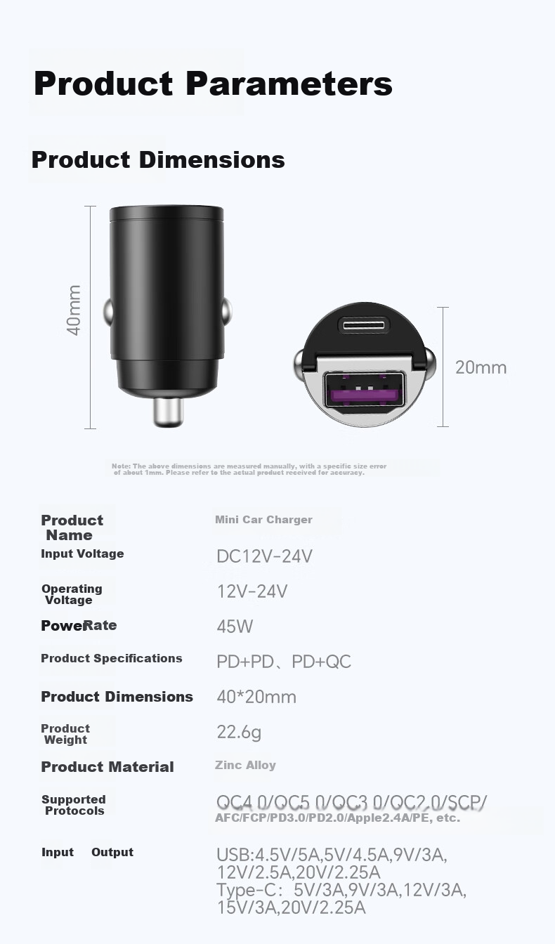 **Compatibility:** QC4.0/QC3.0/QC2.0/SCP/AFC/FCP/PD3.0/PD2.0/Apple2.4A/PE and more