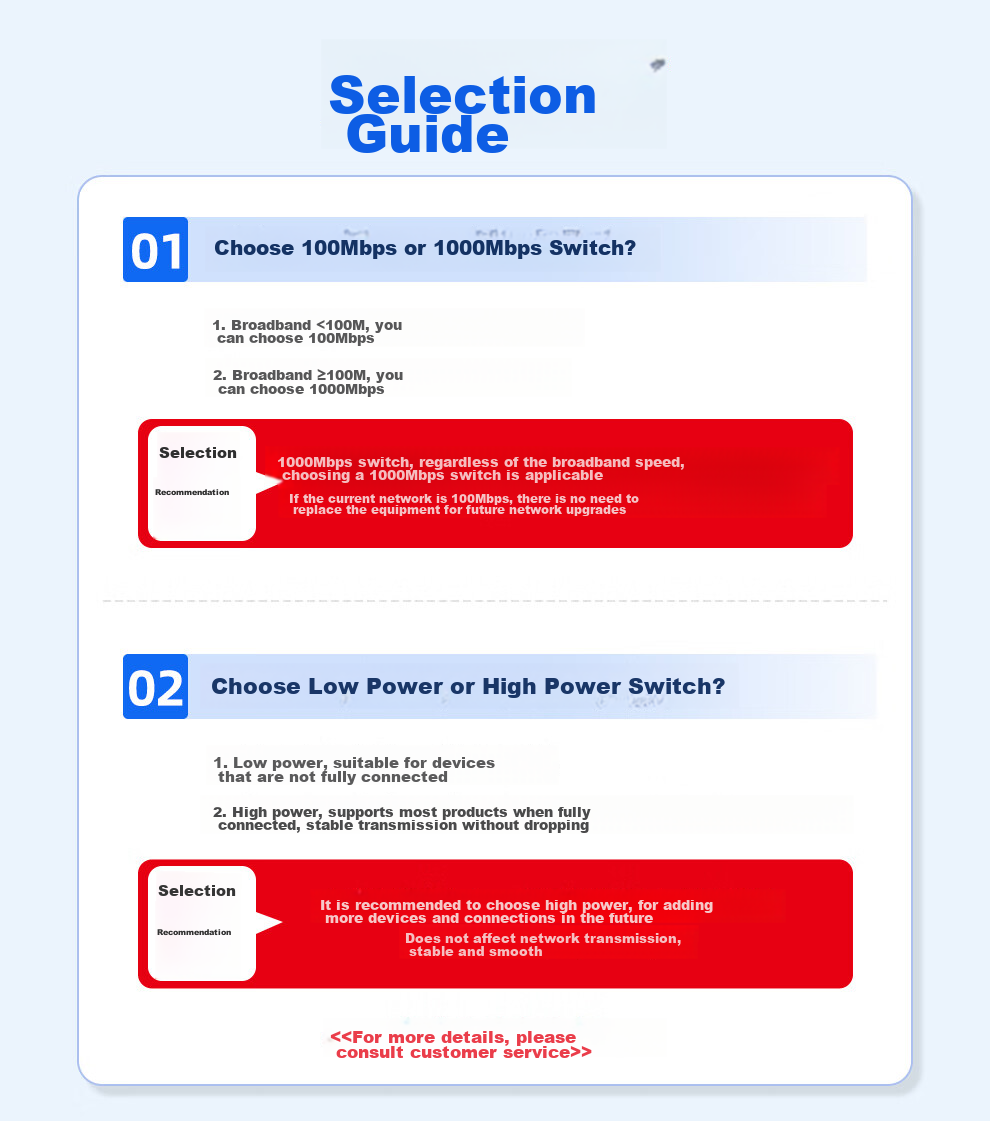 - Recommended to choose high-power switches for stable and uninterrupted transmission
