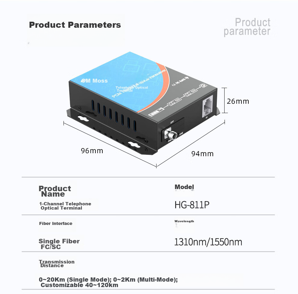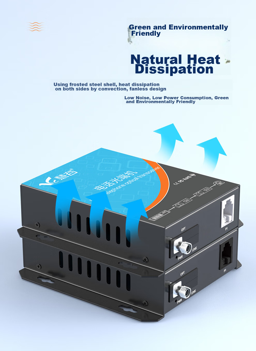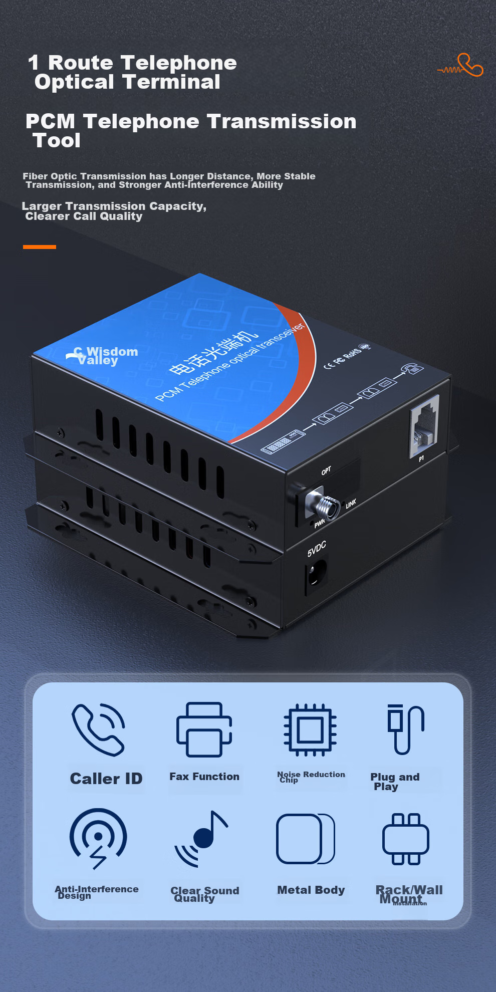 **Description:** 1-channel telephone optical transceiver, PCM telephone transmission device, with longer fiber transmission distance, more stable transmission, stronger anti-interference capability, larger transmission capacity, and clearer lossless communication.