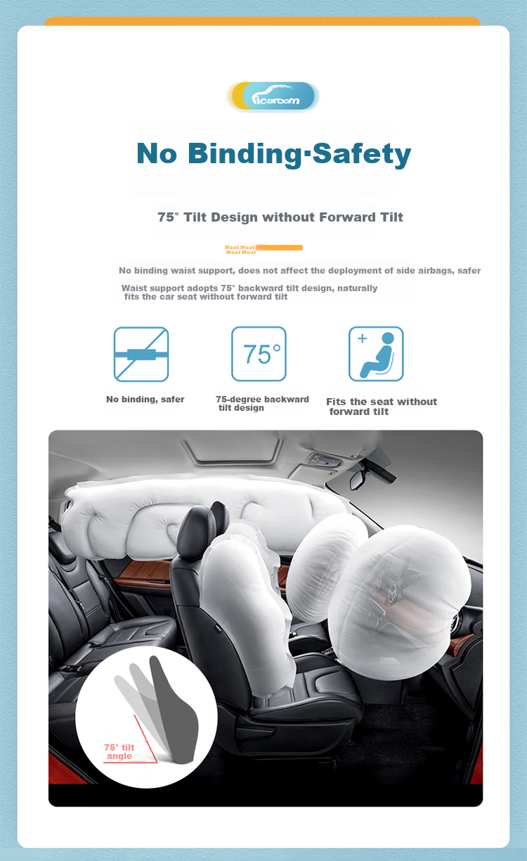 **Safety Design:** 75° tilt angle design for safety and comfort, allowing for airbag deployment without obstruction.