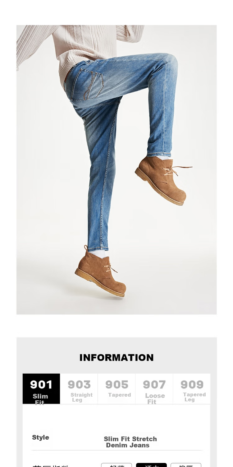 **Details:** Metal button waist, coin pocket, leather label, YKK metal zipper