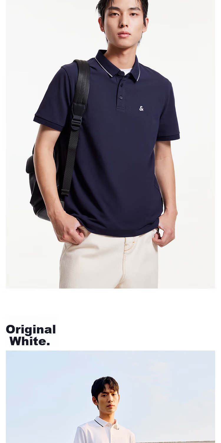 Design: Elegant details, slim fit, youthful design, color block collar, embroidered logo