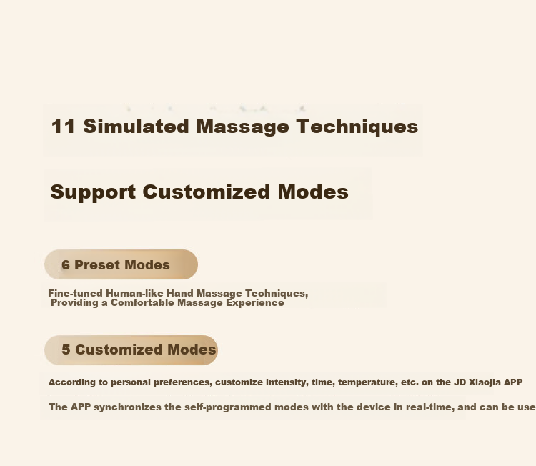Features 11 simulated massage techniques and 5 custom modes