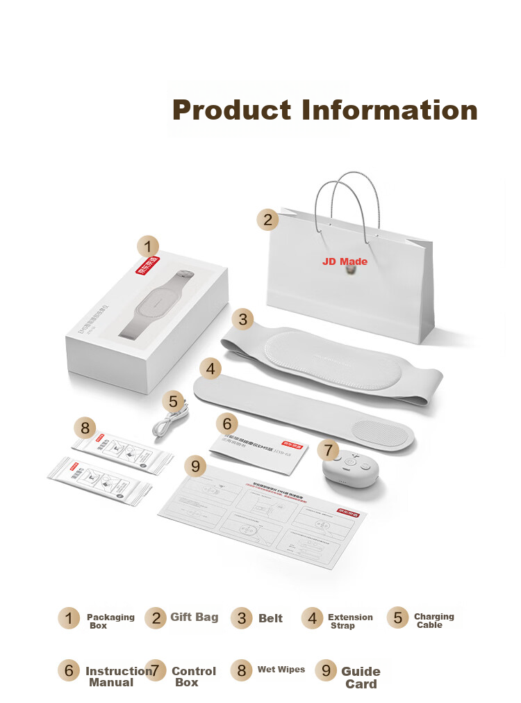 Packaging Box, Gift Bag, Waist Belt, Extension Band, Charging Cable, User Manual, Control Box, Wet Wipes, Guide Card