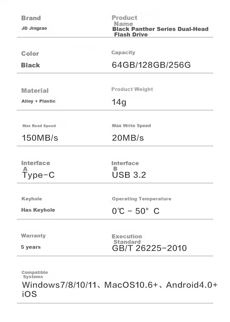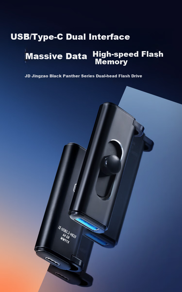 **Product Name:** Black Panther Series Dual-Head Flash Drive, JZ-USB32-HB20
