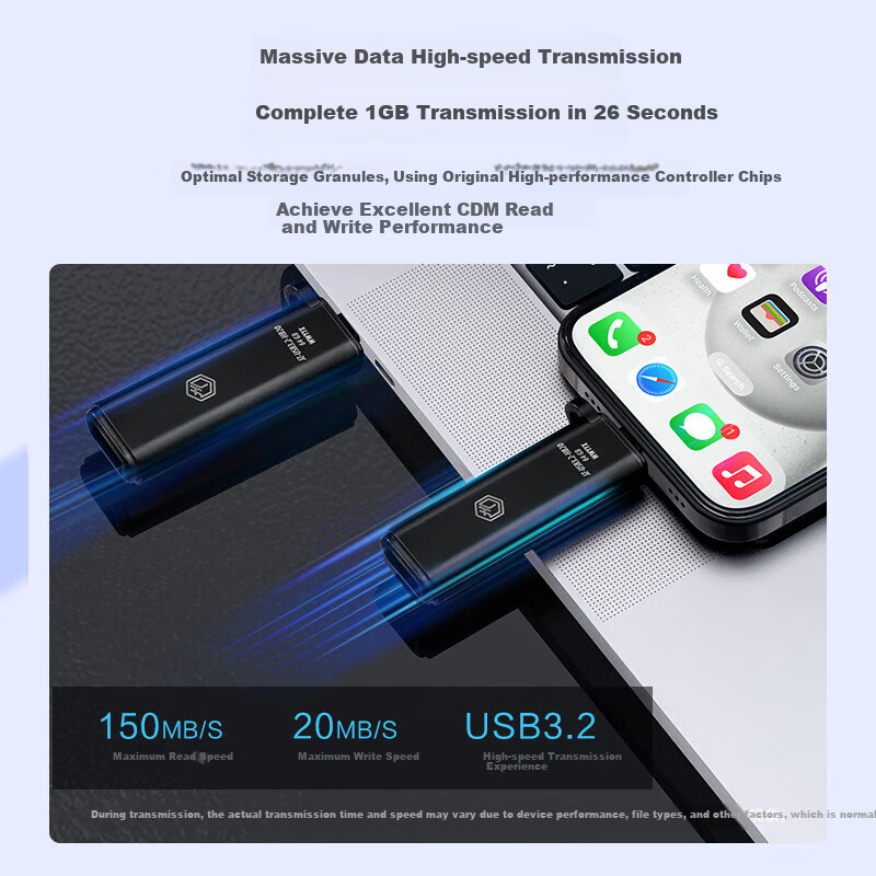 High-speed data transfer with up to 150MB/s read speed and 20MB/s write speed