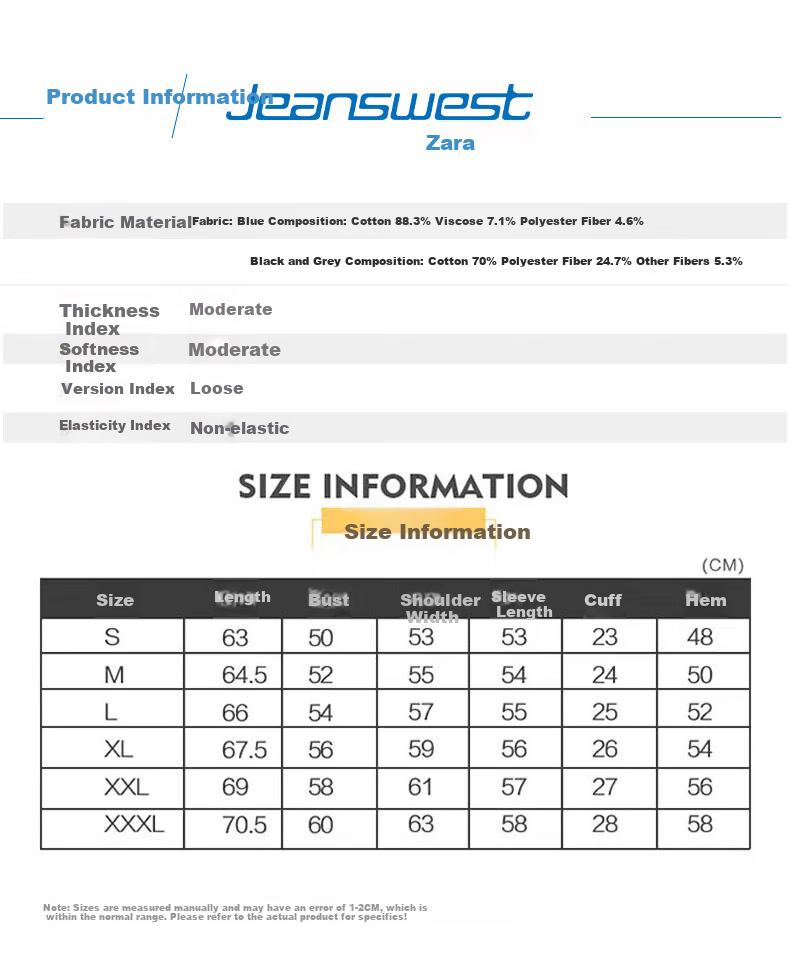 - 3XL: Length 70.5, Bust 60, Shoulder 63, Sleeve Length 58, Cuff 28, Hem 58