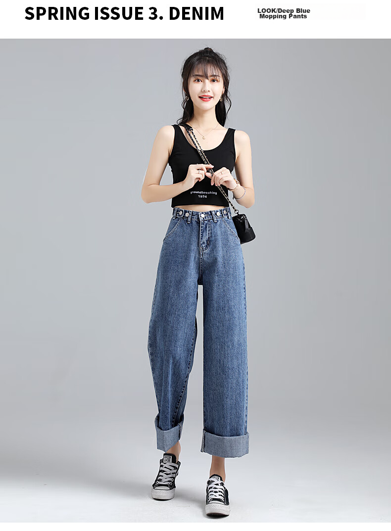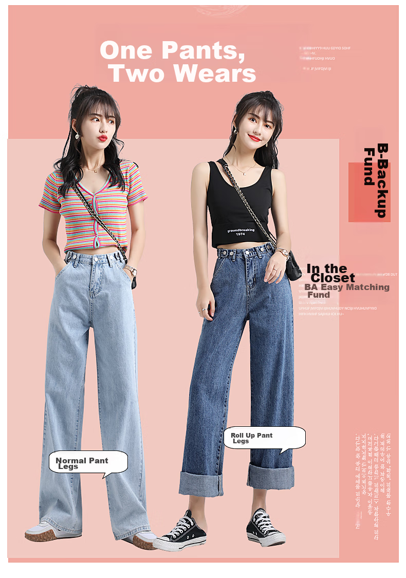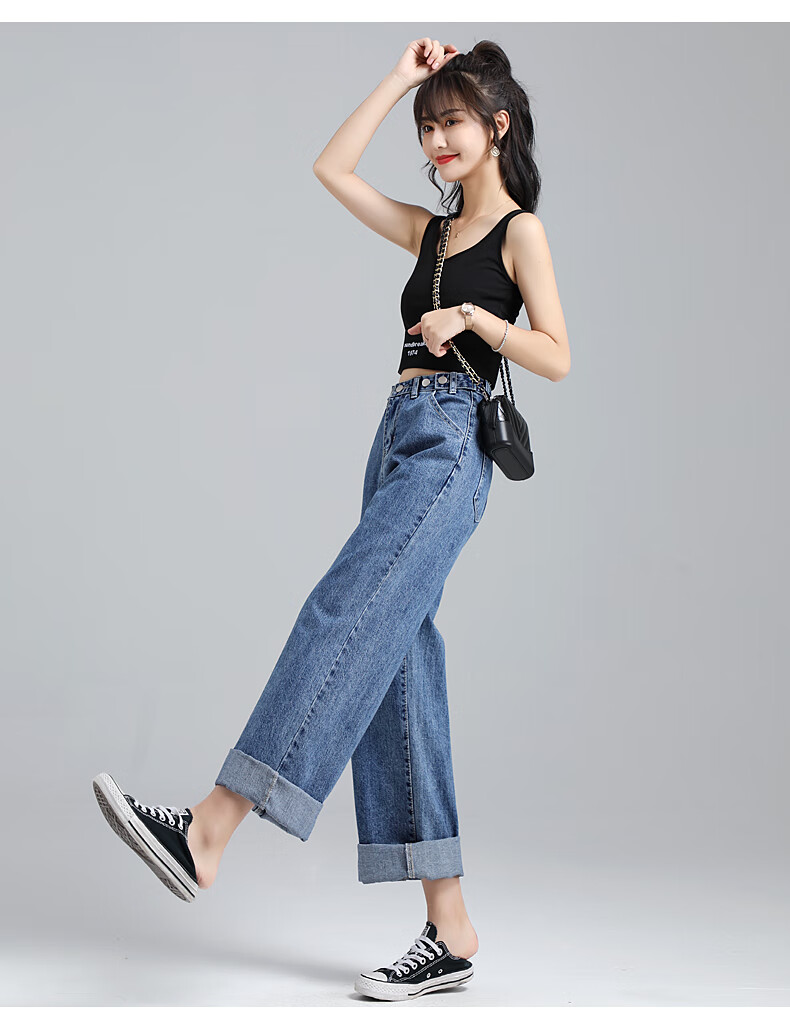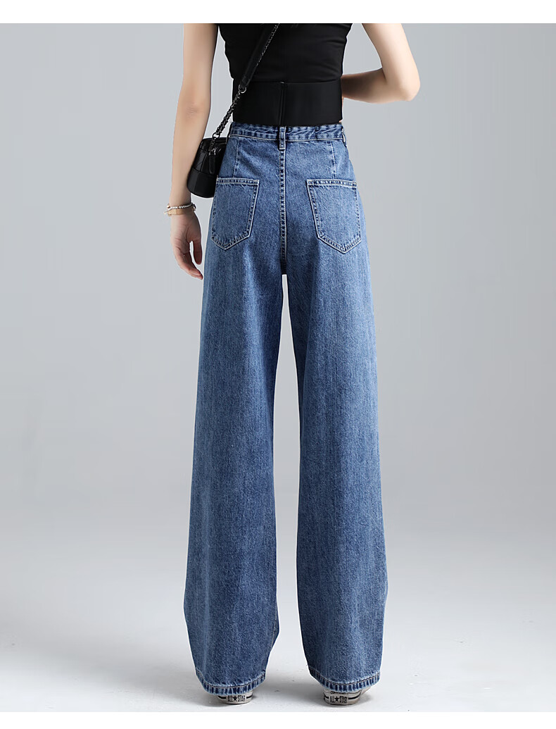 JEANSWEST's New Fashion Wide Leg Jeans are designed to be both stylish and slimming, featuring a high waist and a loose fit that flatters various body types. The adjustable waist design allows for a customized fit, while the wide leg style elongates the legs and provides a slimming effect. Made from a lightweight fabric, these jeans are perfect for the Spring season. With attention to detail and quality craftsmanship, these jeans are a must-have for anyone looking to showcase their style and silhouette.
