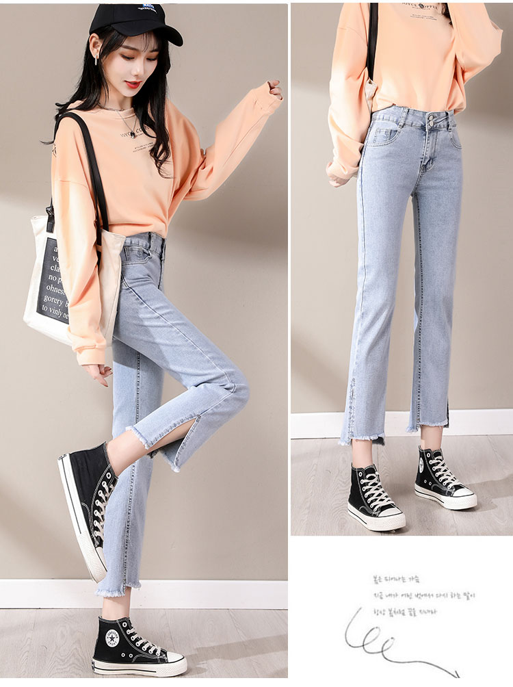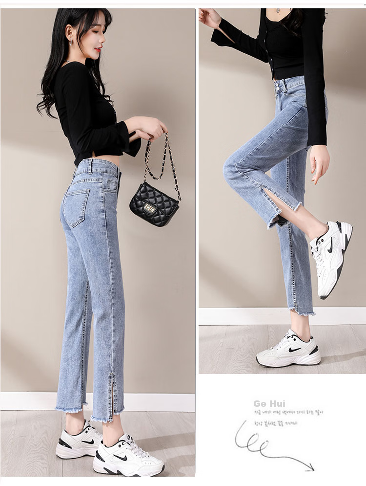 **Trend:** 2024 new trend of split cigarette pants for a slimming and elongating effect