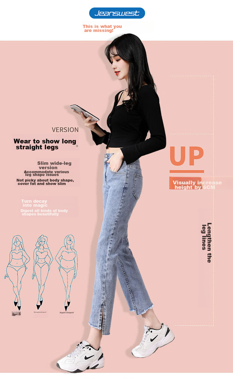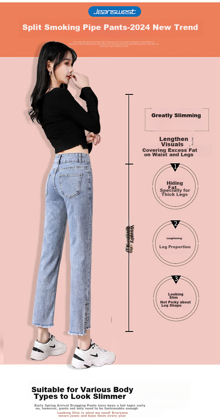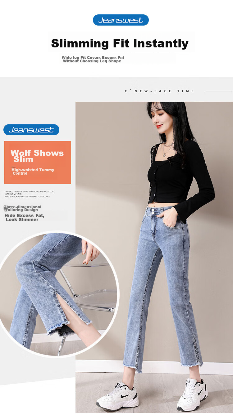 JEANSWEST Jeans are designed to provide a flattering and comfortable fit, with a focus on elongating the legs and slimming the overall appearance. The high-quality fabric and meticulous design details ensure a stylish and durable product that is easy to care for.