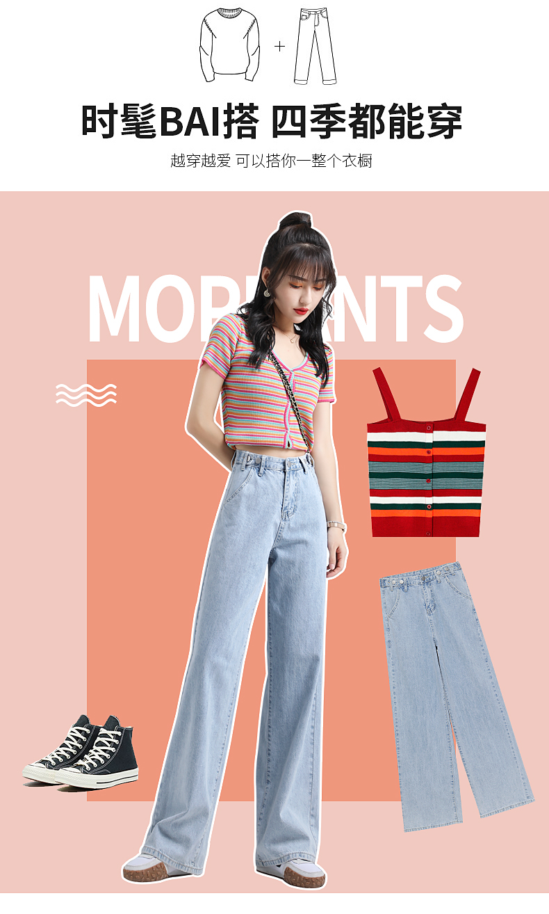 JEANSWEST's New Fashion Wide Leg Jeans are designed to be both stylish and slimming, featuring a high waist and a loose fit that flatters various body types. The adjustable waist design allows for a customized fit, while the wide leg style elongates the legs and provides a slimming effect. Made from a lightweight fabric, these jeans are perfect for the Spring season. With attention to detail and quality craftsmanship, these jeans are a must-have for anyone looking to showcase their style and silhouette.