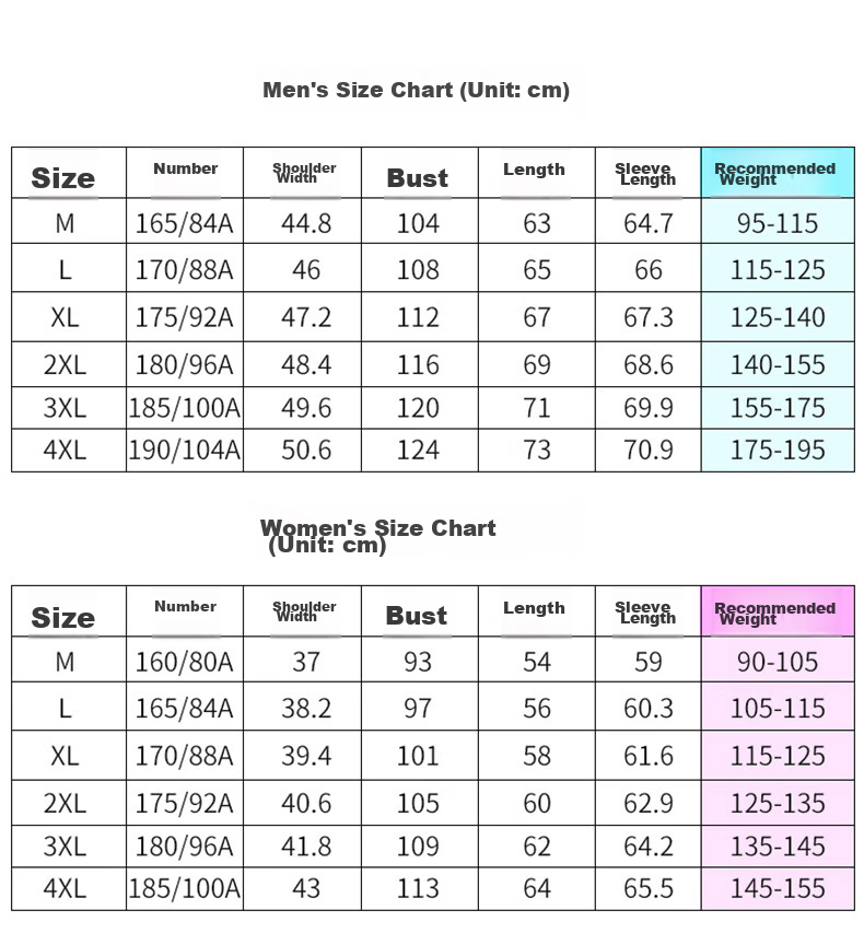 - Men's: M-4XL