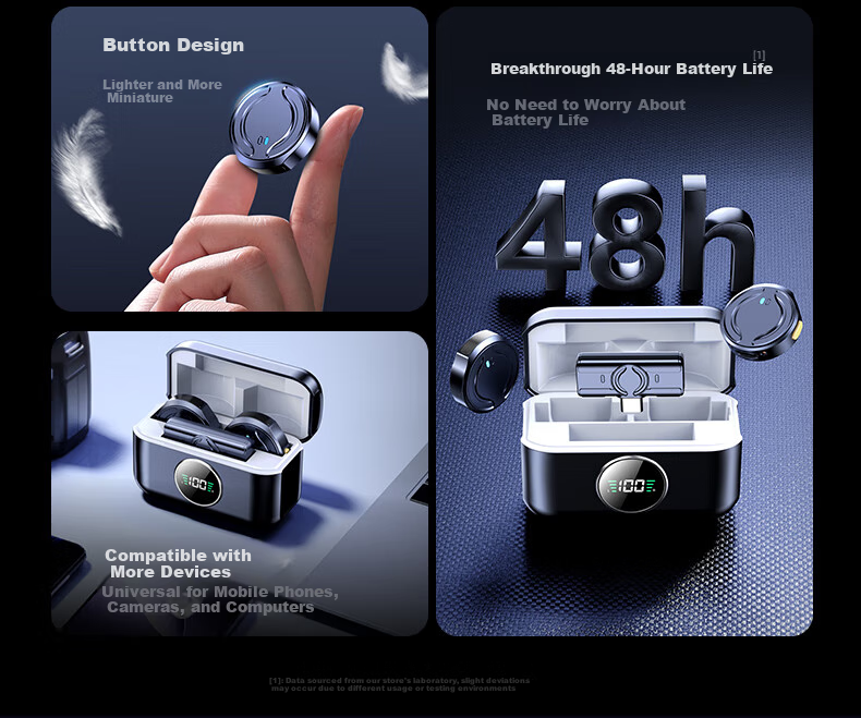 **Design:** Button-shaped microphone with upgraded performance, compact and stylish design