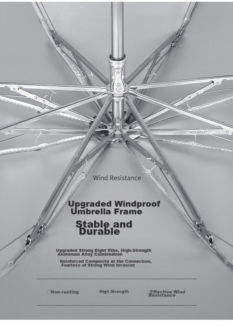 Wind Resistance: Upgraded wind-resistant umbrella ribs made of high-strength aluminum alloy, reinforced composite connections, rust-resistant, high-strength, and effective wind resistance