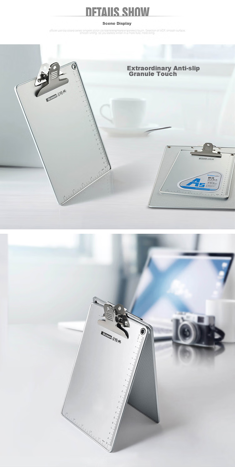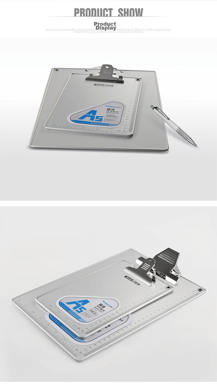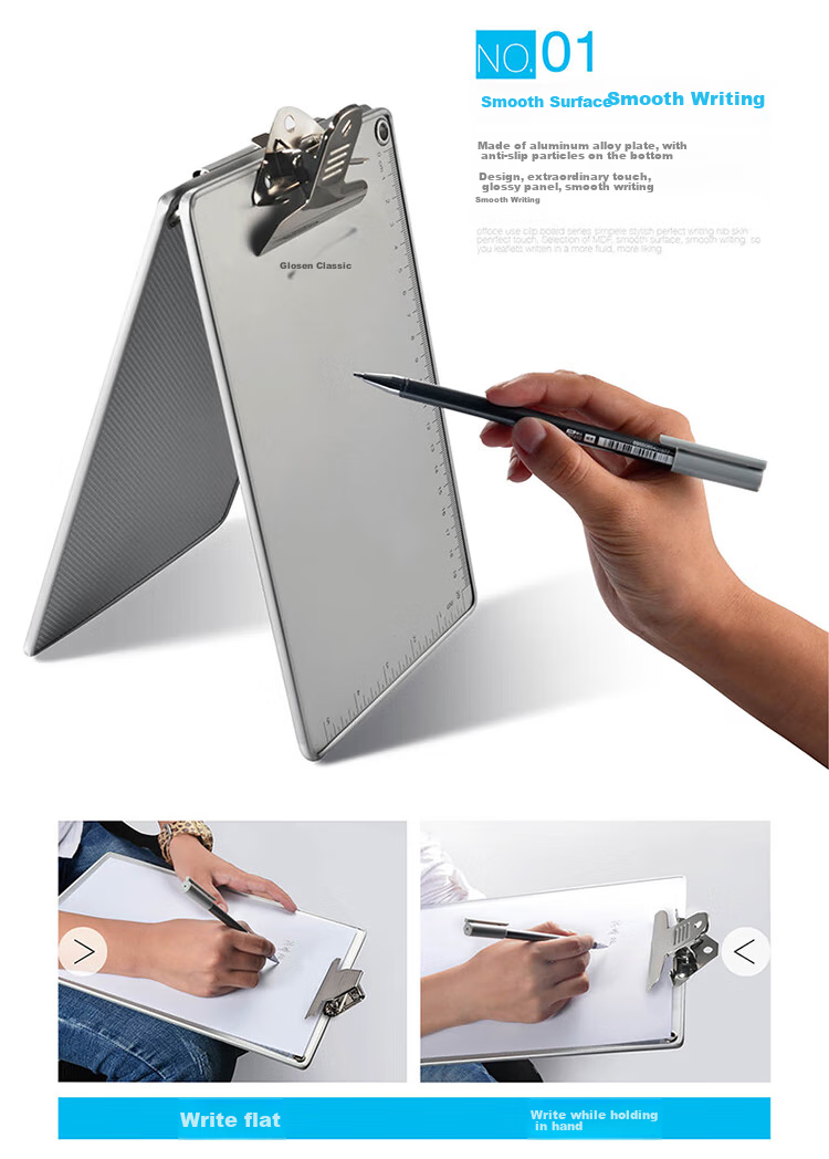 Features: Skidproof bottom, smooth writing surface, durable metal clip