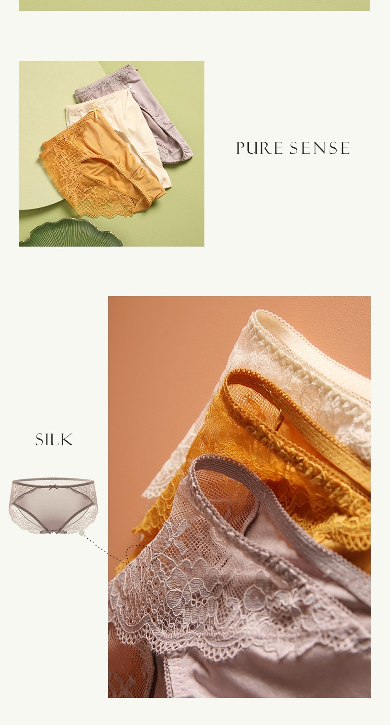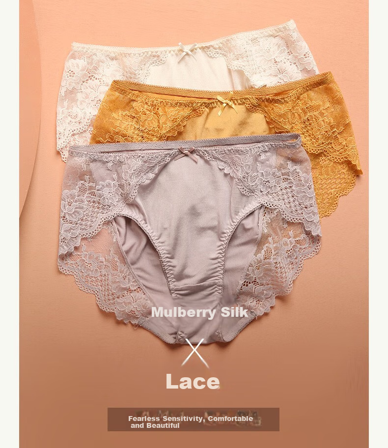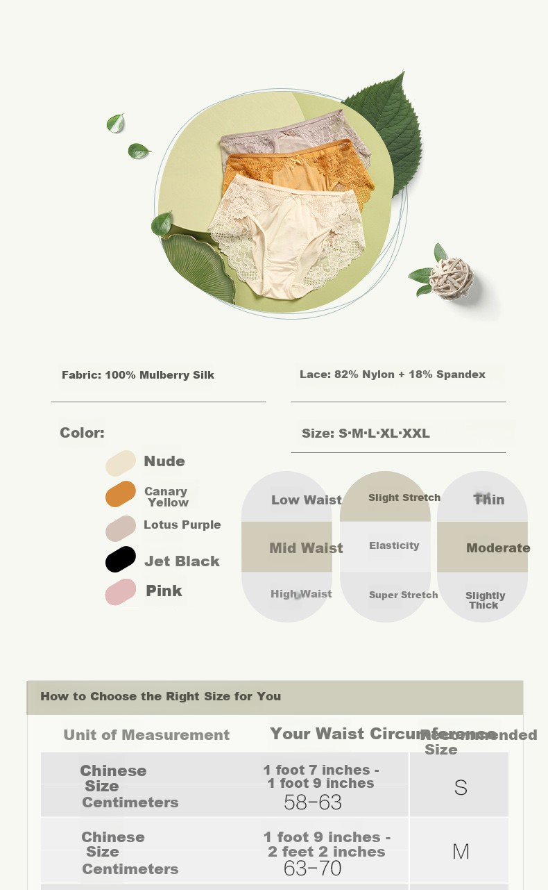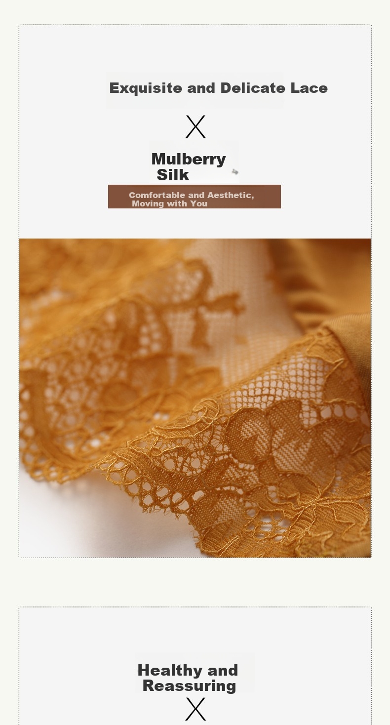 **Material:** 100% mulberry silk, Lace: 82% nylon + 18% spandex
