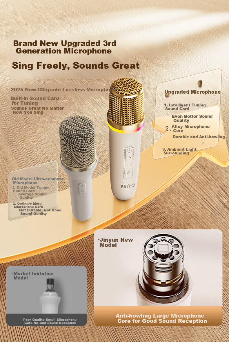 **Note:** The product specifications include details about the brand, features, design, sound quality, certifications, and awards of KINYO () products.