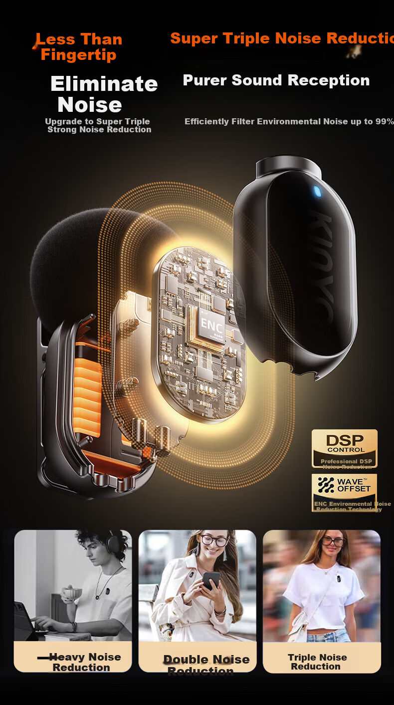 - Triple noise reduction technology for pure and clean audio recording
