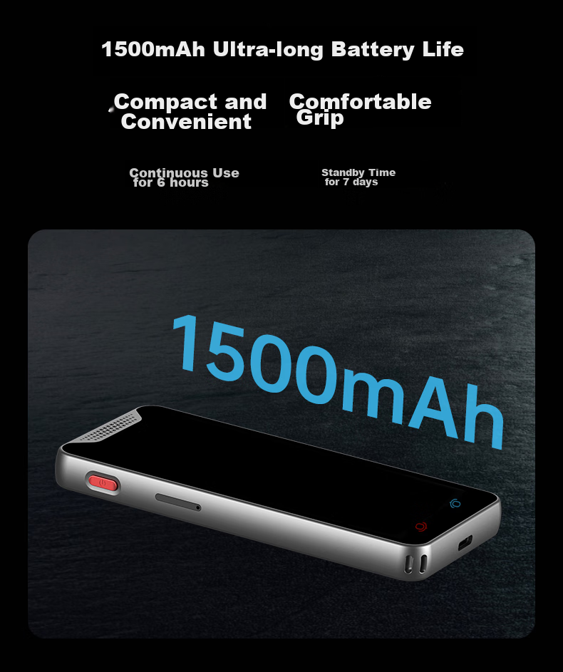 **Battery:** 1500mAh battery for up to 6 hours of continuous use and 7 days of standby time