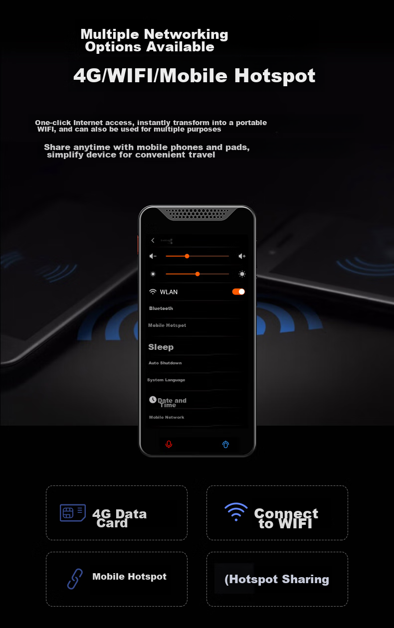 **Connectivity:** Supports 4G/Wi-Fi/mobile hotspot connectivity