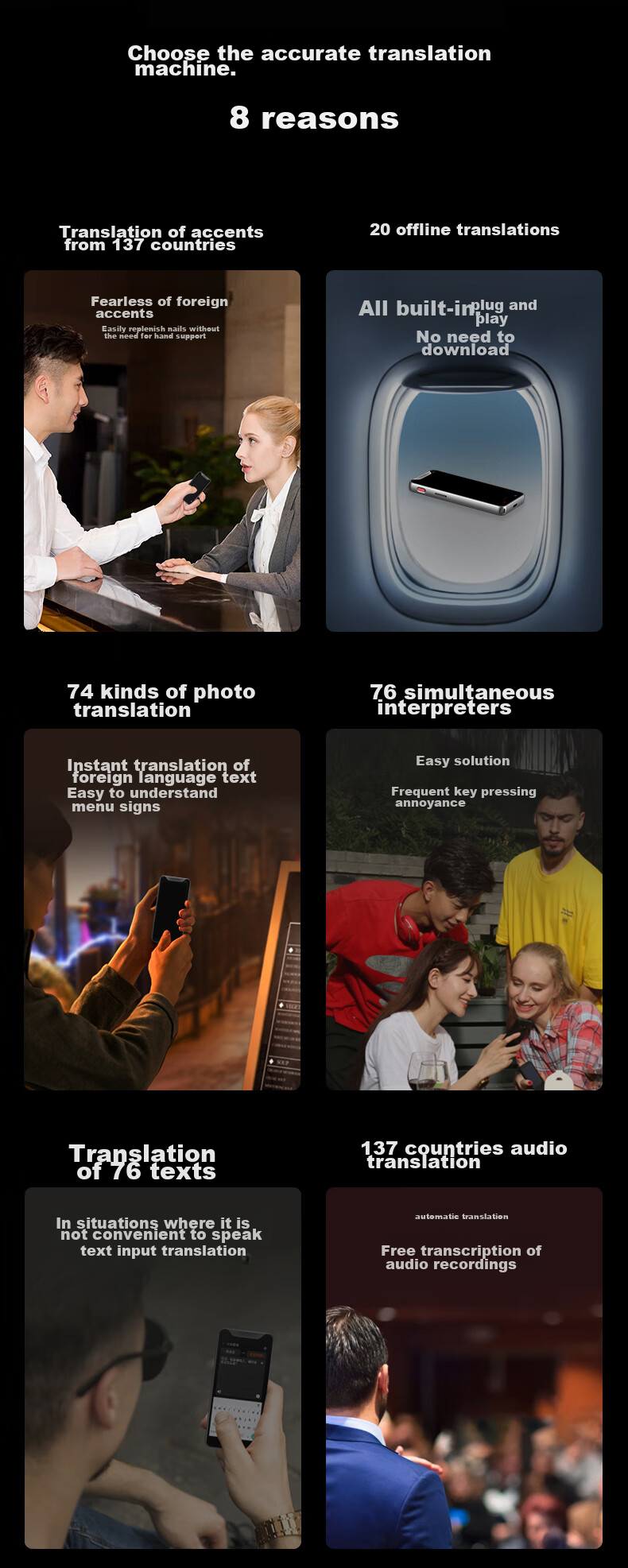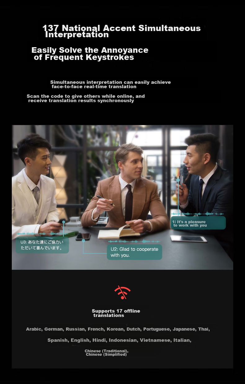**Voice Translation:** Supports 137 countries' accents for real-time translation