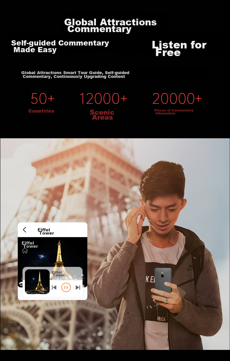 **Sightseeing Guide:** Provides audio guides for over 50 countries and 12000+ attractions
