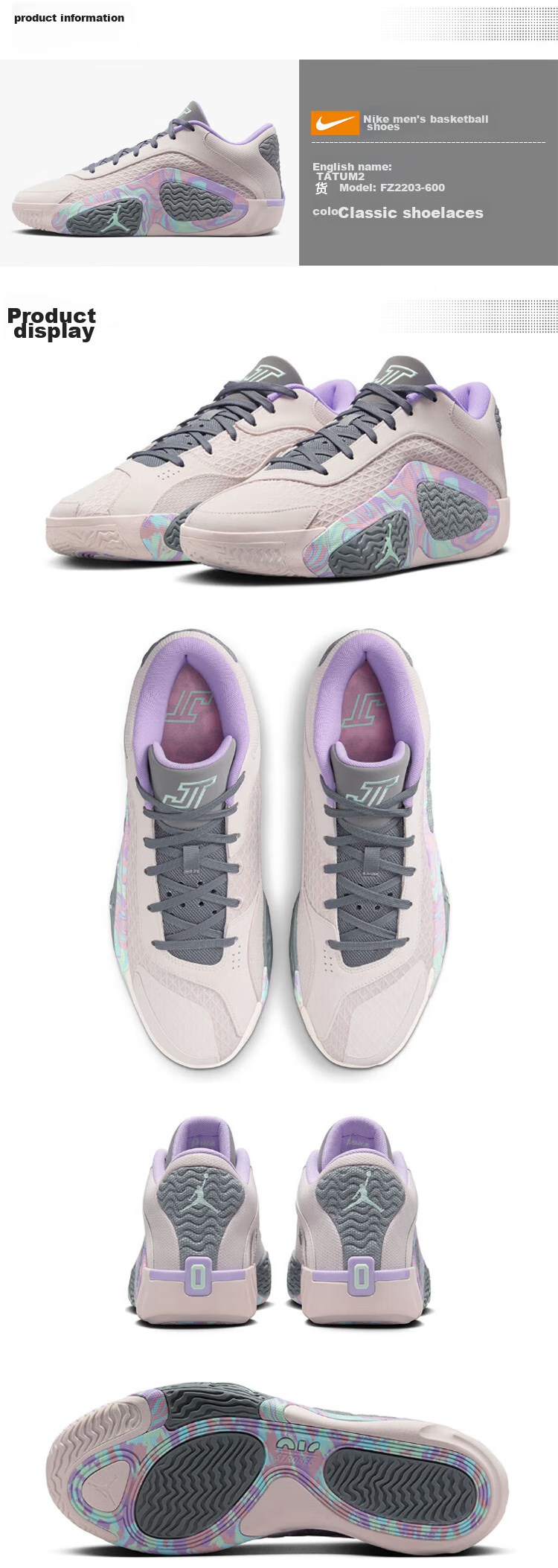 (Note: The provided information is a summary of the product specifications for NIKE TATUM2 men's basketball shoes in different color variations and sizes, highlighting features such as comfort, traction, and durability.)